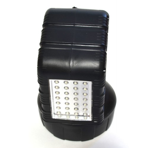 Красный пластиковый корпус фонаря снабжен удобной рукояткой. Имеется возможность зарядки от автомобильного аккумулятора (автомобильное зарядное устройство поставляется вместе с фонарем.)