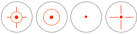 Варианты прицельных марок коллиматорных прицелов Hakko: